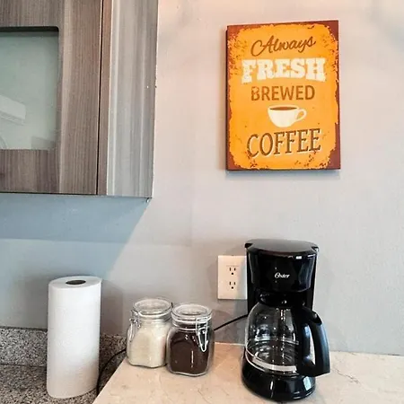 Con instalaciones de autoservicio como una cocina bien equipada, este apartamento también cuenta con una zona de comedor exterior donde los huéspedes pueden relajarse y disfrutar de sus comidas. Los huéspedes también pueden tomar un autobús en la estación de autobuses parada autobus, situada a 1 km, para explorar Cancún.
