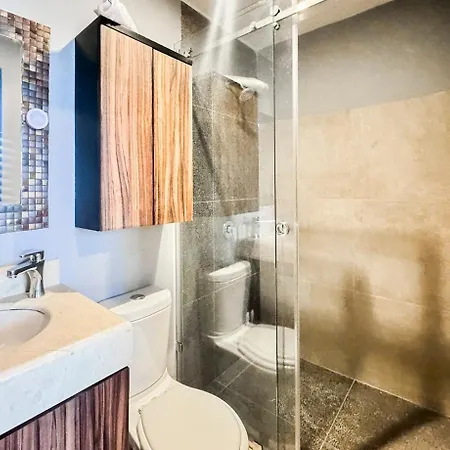 La propiedad ofrece a sus huéspedes un cuarto de estar, un balcón y una cocina, así como comodidades tan modernas como climatizador. En el Apartamento Alberca Aire Acondicionado Lavadora WiFi a 12 min Playa, los huéspedes disfrutarán de la comodidad de disponer de secador de pelo y toallas en el cuarto de baño. Además, hay un bidé, un inodoro separado y ducha.